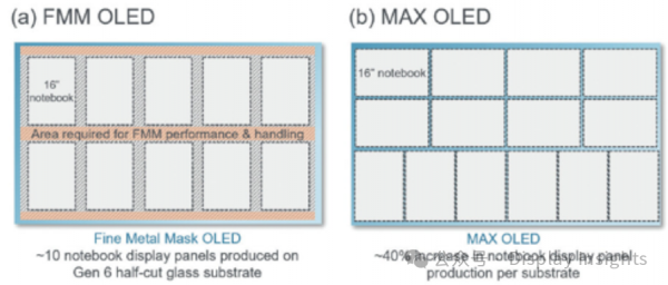 图6. 基板玻璃利用率对比:(a) FMM OLED;(b) MAX OLED
