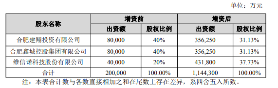 截至目前,合肥国显首期注册资本金20亿元已全部到位。
