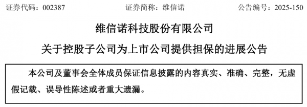 2025 年 12 月 27 日,维信诺科技股份有限公司(证券代码:002387)发布公告,披露控股子公司云谷(固安)科技有限公司为其新增担保的进展。固安云谷与中国建设银行股份有限公司昆山分行签署《本金最高额保证合同》,提供不超过 4.25 亿元的连带责任保证担保,以支持公司生产经营相关授信业务开展。