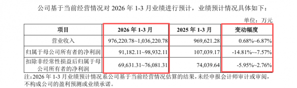 报告中惠科表示,公司预计 2026 年1-3 月营业收入预计达到 976,220.78 至 1,036,220.78 万元,同比增长 0.68% 至 6.87%;归母净利润预计为 91,182.11 至 98,932.11 万元,同比变动幅度为 - 14.81% 至 - 7.57%;扣非净利润预计为 69,631.31 至 76,081.31 万元,同比变动幅度在 - 5.95% 至 2.76% 之间。