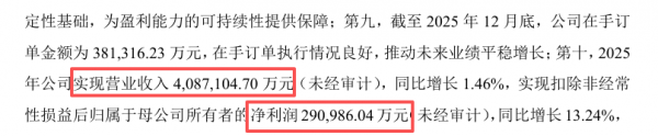 报告指出,2025 年惠科股份全年实现营业收入 4,087,104.70 万元(未经审计),同比增长1.46%;扣非归母净利润 290,986.04 万元(未经审计),同比大幅增长13.24%。