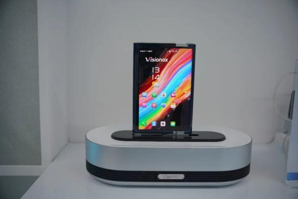 AI正在推动终端形态从单一设备走向多形态、多场景协同。展会现场,维信诺展示了柔性AMOLED动态滑移终端。它采用On-cell Metal Mesh触控显示一体化工艺,可实现全模组滑移半径3mm,通过对AMOLED柔性折叠技术的创新升级,可实现显示区尺寸从收纳态至展平态连续性变化,最大滑移距离可达48.55mm,为未来可变形设备带来更多可能。