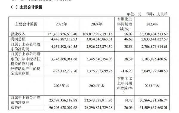 2025年实现归属于上市公司股东的净利润40.5亿元,较2024年的29.3亿元增长38.6%。