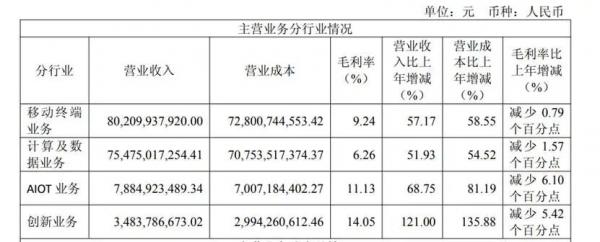 2025年华勤技术移动终端业务收入为80,209,937,920.00元,同比增长57.17%;