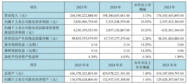 3月31日晚间,京东方A公告,2025年实现营业收入2045.9亿元,同比增长3.13%;归属于上市公司股东的净利润58.57亿元,同比增长10.03%。