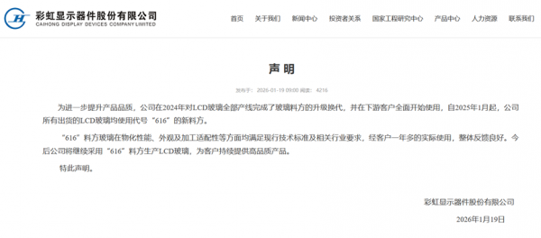 当前,以彩虹股份为代表的材料企业正与京东方、华星光电、惠科等面板厂商深度协同,围绕高世代基板玻璃等关键技术联合攻关,携手国内设备、材料企业共同完善自主供应链建设。产业链上下游紧密联动、优势互补,产业协同效应持续释放,推动中国显示产业发展兼具稳定性与韧性。