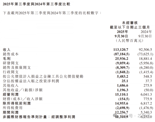 2025年11月18日,小米公司公布了截至2025年9月30日止三个月(“2025年第三季度”)的未审计合并财报。
