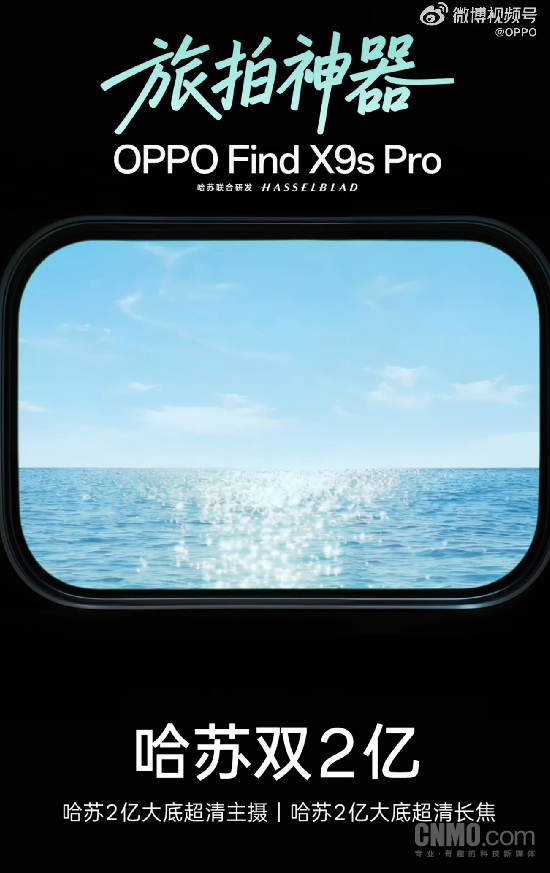 3月30日,OPPO官方正式宣布,新一代小屏影像旗舰OPPO Find X9s Pro将搭载哈苏2亿大底超清主摄与哈苏2亿大底超清长焦。