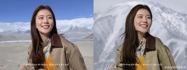 旅拍方面,Find X9 Ultra 的10倍光变,能把远处的雪山、森林、城市天际线“压缩”到人物身后,让千米之外的风景仿佛触手可及。配合哈苏自然色彩和 LUMO 超清人像算法,人物的发丝微光、皮肤纹理都被真实还原。
