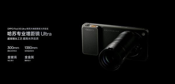 配合这颗10倍长焦,OPPO还推出了一支300mm增距镜,配有专业手柄和保护壳。