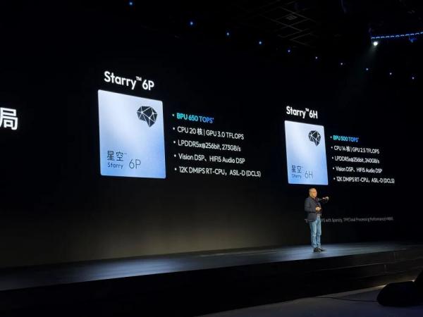 该芯片分为两个版本,分别为Starry 6P和Starry 6H,前者算力650TOPS,后者500TOPS。
