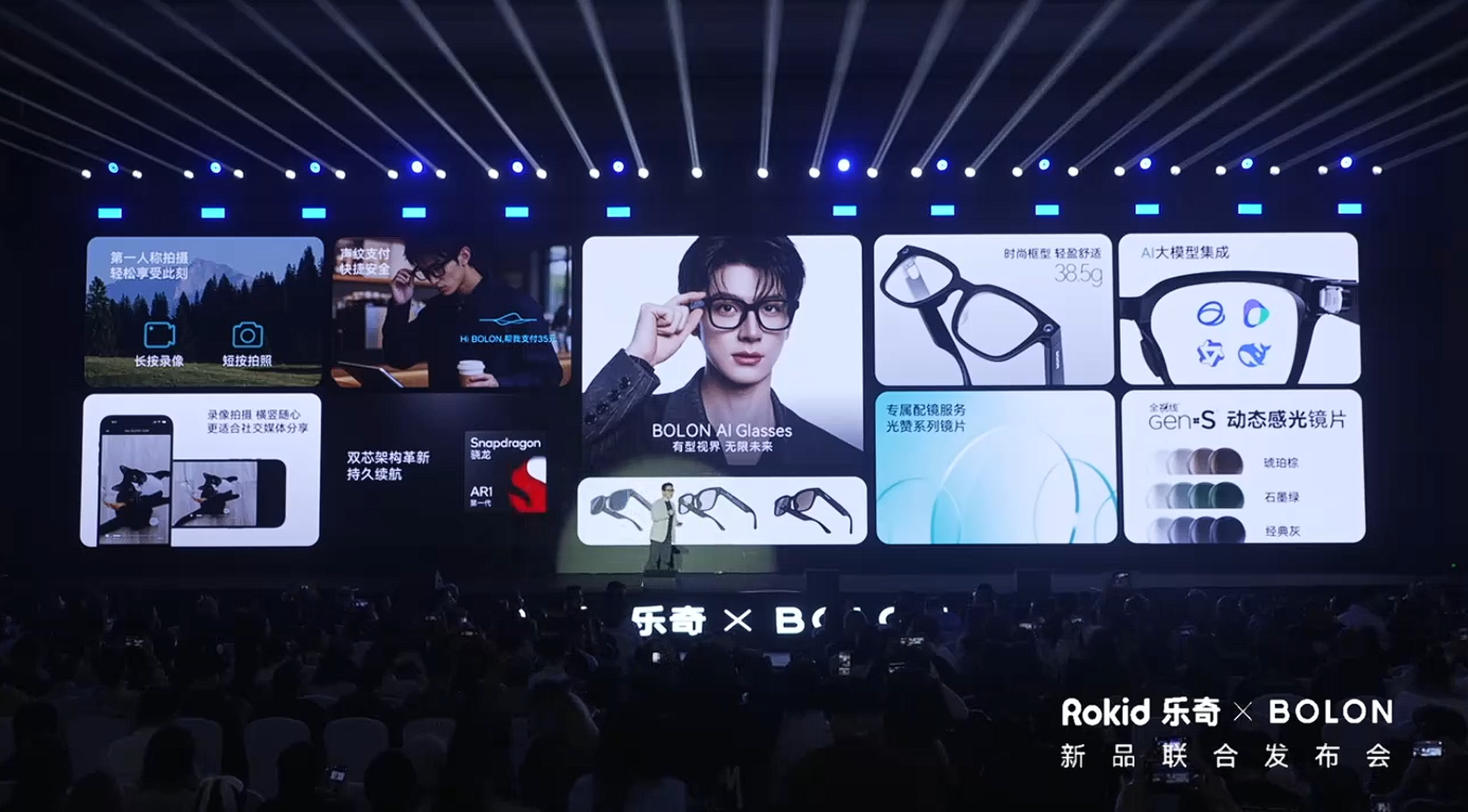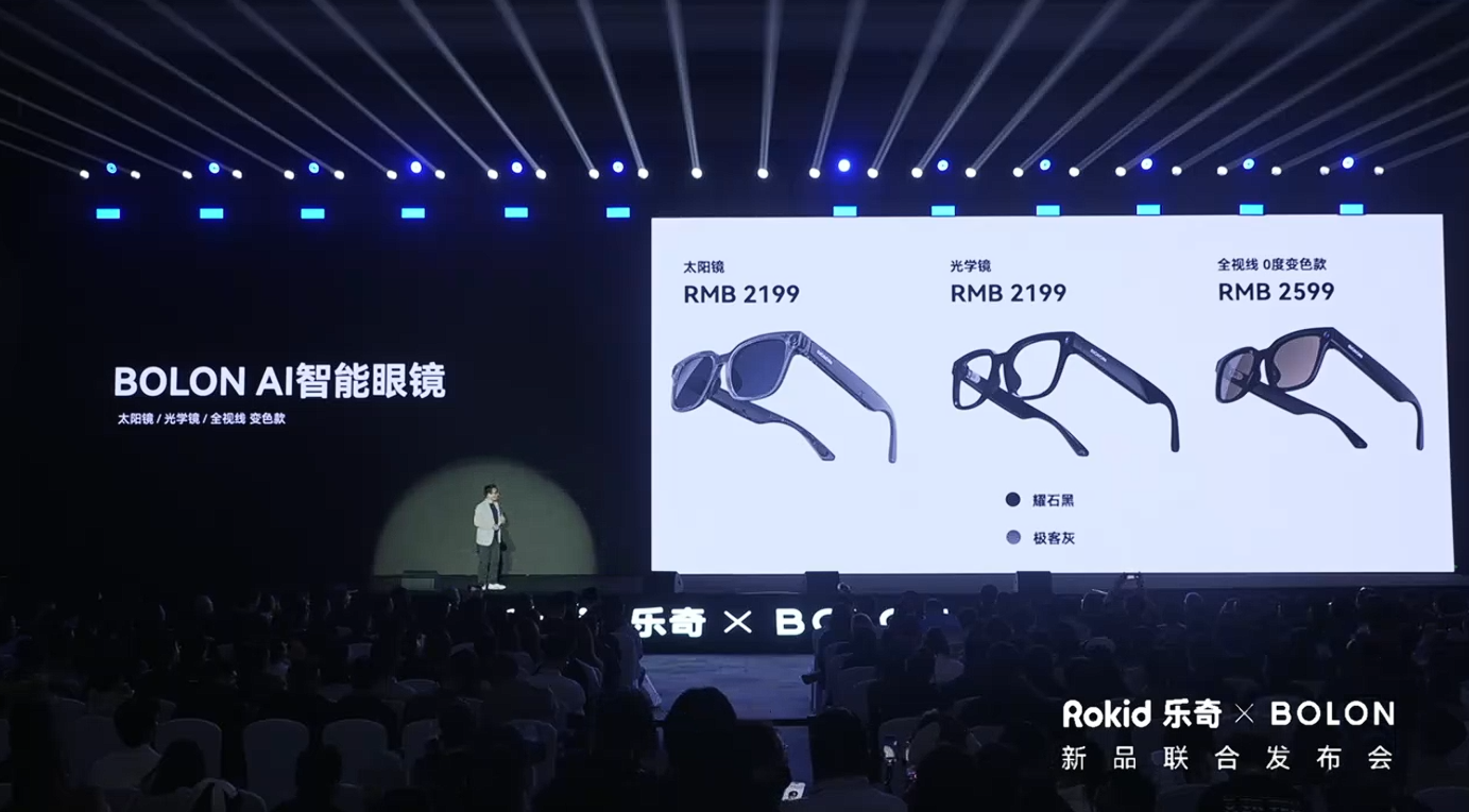 IT之家 11 月 13 日消息,Rokid 乐奇 × BOLON 新品“BOLON AI 眼镜”今晚正式发布,售价 2199 元起,拥有太阳镜款、光学镜款、全视线变色款,并提供曜石黑、极客灰两款配色。