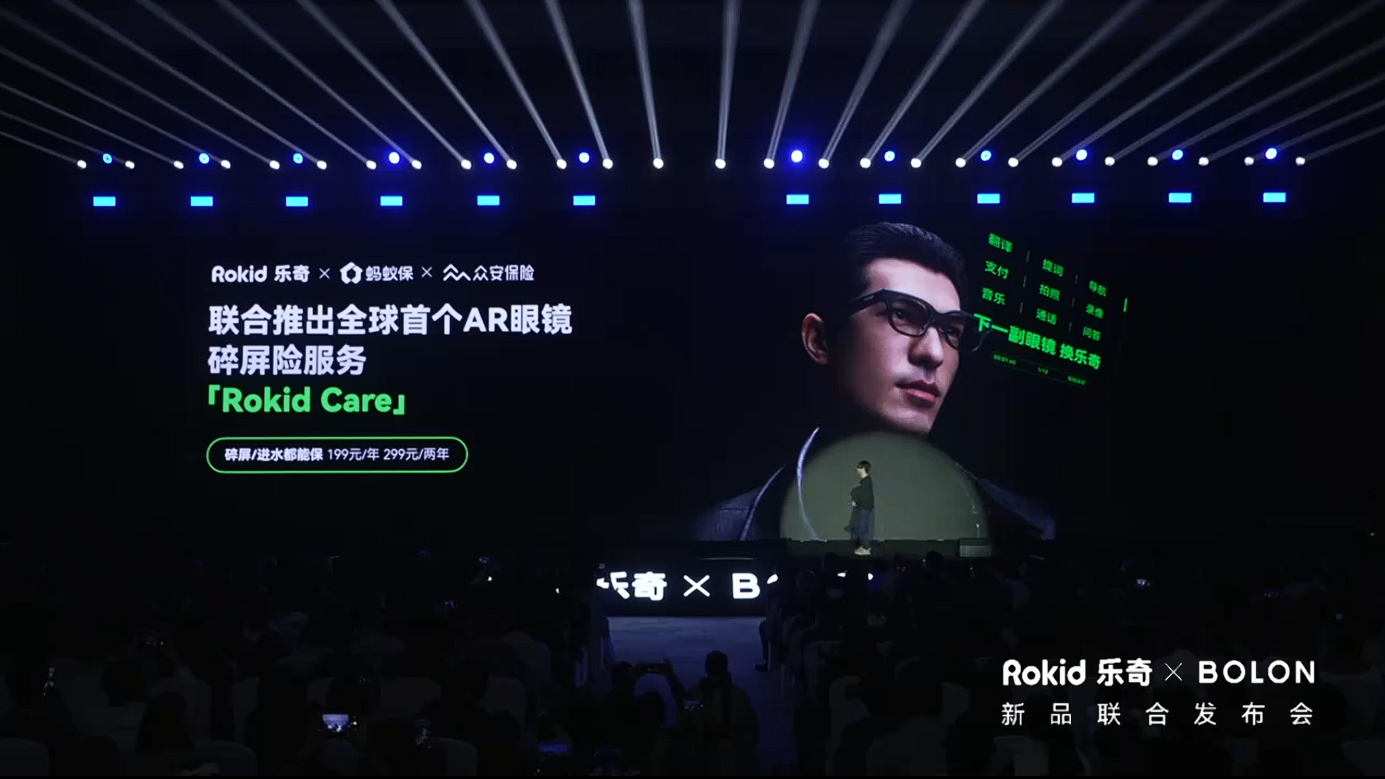 Rokid 乐奇眼镜还将推出 QQ 音乐点歌、航班管家等功能,未来还将支持看房、车控、看小说等功能。值得一提的是,Rokid 乐奇还与蚂蚁保、众安保险联合推出全球首个 AR 眼镜碎屏险服务「Rokid Care」,碎屏 / 进水都能保,199 元 / 年、299 元 / 两年。