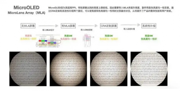 同时,针对 MicroOLED 像素微小、亮度受限的缺陷,PICO 通过微透镜(MLA)提升亮度,并搭配 CRA(主光线角)光学补偿方案,保障亮度与色均匀性。