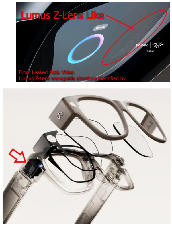 Meta Ray-Ban Display搭载的波导为Lumus Z-Lens几何波导变种,虽Meta与Lumus未明确承认,但通过CT扫描与光路分析可精准印证,其核心优势直接解决了衍射波导的两大行业难题: