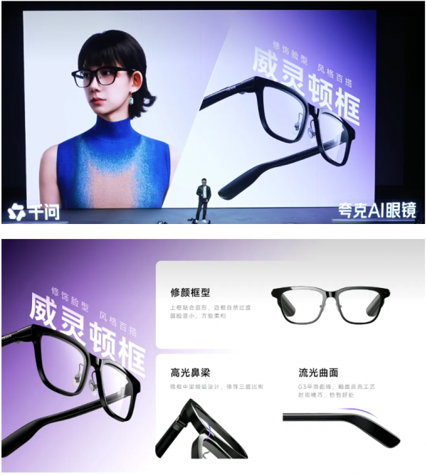 框型设计方面,夸克 AI 眼镜 G1 推出三款潮流框型,覆盖不同脸型与使用场景。