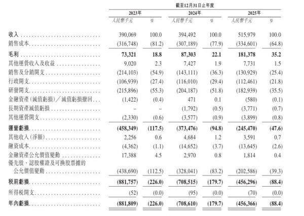 据招股书显示,XREAL 2023-2025 年收入分别为 3.9 亿元、3.94 亿元、5.16 亿元。同期年内亏损分别为 8.82 亿元、7.09 亿元、4.56 亿元,三年累计亏损约 20.47 亿元。