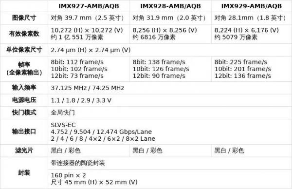 早在去年9月,索尼就官宣推出IMX9xx系列cmos,工业级全局快门传感器。尤其是IMX927,1.05亿像素+100fps,彻底消除高速拍摄的果冻效应,同时集成HDR技术,提供彩色与黑白双版本,满足不同工业场景需求。