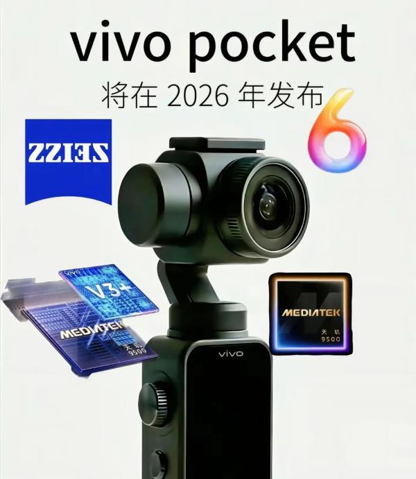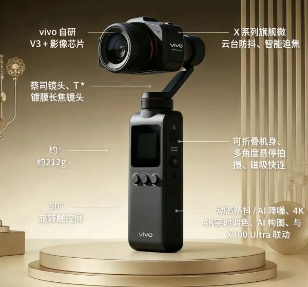 时间点被提到在2026年三季度,差不多九月,和vivo X500系列同台亮相,定位说的是手机影像的浓缩版,硬件直接搬旗舰那套,1英寸IMX989主摄,蔡司T镀膜,自研V3影像芯片,视频上去到4K 60帧,外形做成类似大疆那种方案,折叠屏配云台,机身压在200g以内,防抖靠vivo自家的微云台,思路就是把抖动压住,把跟拍推进去,随手拿起来就能拍稳定。