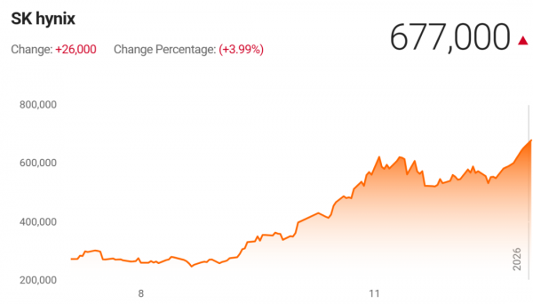 根据SK海力士财报显示,2025年前三季累计营收为64.3万亿韩元(445亿美元),营业利润为28万亿韩元(194.11亿美元),营业利润已超过该公司2024年创下的23.4万亿韩元的年度纪录。SK海力士的股价在2025年下半年更是暴涨了超过140%。