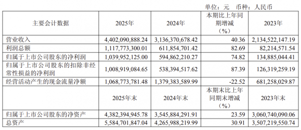 2025年,瑞芯微实现营业收入44.02亿元,同比增长40.36%;归属于上市公司股东的净利润达到10.40亿元,同比增长74.82%;扣非净利润10.09亿元,同比增长87.39%。这是公司年度归母净利润首次突破10亿元大关,标志着公司盈利能力迈上了新台阶。