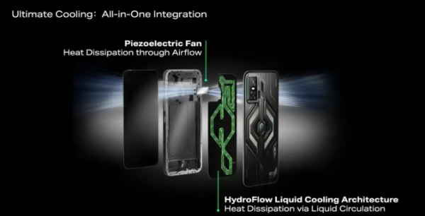 行业首创的压电风扇及HydroFlow液冷散热架构二合一技术(来源:传音)