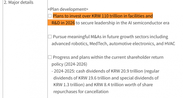 在题为“公司价值提升计划”的监管文件中,三星电子列出了四大目标,包括成为全球唯一能够提供涵盖存储、晶圆代工及先进封装一站式解决方案的半导体公司,同时要在包括HBM在内的高附加值存储市场中,确立强劲且可持续的领先地位。