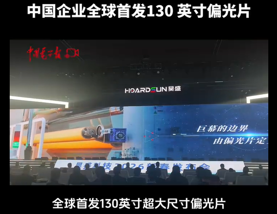 据中国电子报,1月27日,昊盛科技集团在无锡发布全球首款适用于130英寸LCD面板的超宽幅偏光片。该产品突破了此前115英寸面板的生产极限,为显示产业向更大尺寸发展提供了新的核心材料支撑。据悉,此次发布的130英寸偏光片在光学性能上进行了针对性改进。