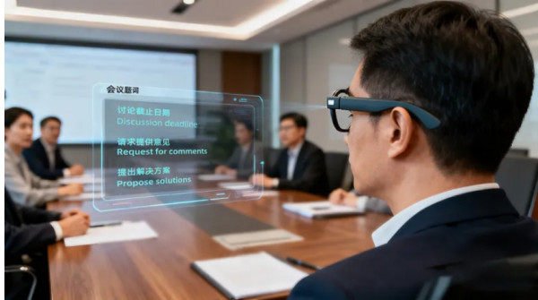 在会议场景中,可自动记录会议内容并清晰区分不同发言人,依托内置的利亚德自研大模型及主流通用模型,还能对会议纪要进行优化,帮助用户快速梳理要点,节省复盘时间。同时支持语音指令操控,开启翻译、查看提词等操作均能通过语言指令完成,使用更便捷自然。