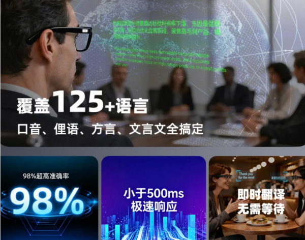 支持 125 + 种语言及口音识别,不仅包含主流语种,还覆盖地方俚语、方言乃至中国文言文;翻译准确率达 98%,延迟低于 500ms,无论是国际会议、境外旅行还是跨语言交友,都能实现 “流畅秒懂” 的沟通体验。