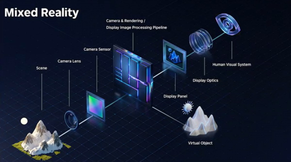 据介绍,Project Swan 最核心的突破是采用 “旗舰主 SoC + 自研专用芯片” 双芯片架构,重新改变了 XR 设备的算力分配逻辑。其中,旗舰级主 SoC 相较于当前主流的 XR2 Gen2 平台,CPU 性能实现了一倍以上的跨越式提升,GPU 性能增幅达 127%,为双 4K 分辨率渲染、复杂空间算法运行提供充足算力支撑。