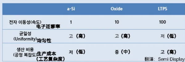 TFT种类比较表(图片来源:三星显示)