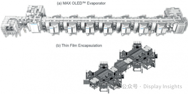 为制造这种先进像素架构,如下图3所示,AMAT开发了一种集成系统解决方案,包括精确角度控制的 OLED蒸发设备和为MAX OLED优化的TFE CVD系统。