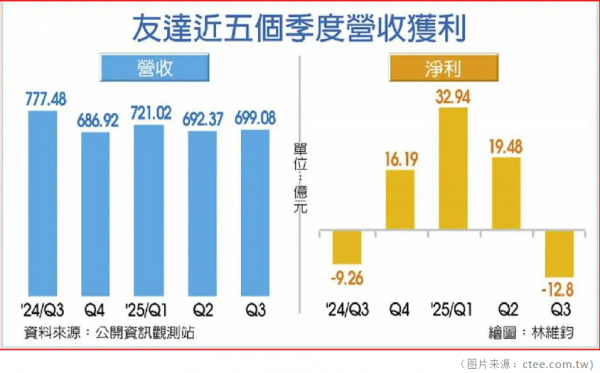 友達近五個季度營收獲利(图片来源:ctee.com.tw)