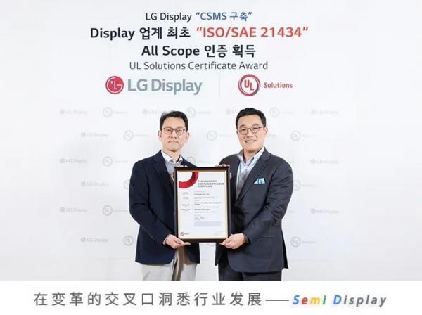 LG Display从全球安全科学验证企业UL Solutions处获得了“汽车网络安全工程国际标准(ISO/SAE 21434)”认证。该标准是一项验证制度,用以确认汽车在开发、生产、供应、报废等整个生命周期中,是否具备应对网络攻击风险的流程。