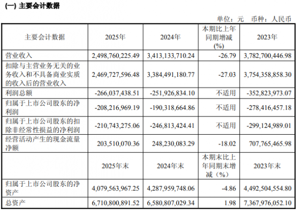 4月22日,龙腾光电公布2025年年报,公司营业收入为25.0亿元,同比下降26.8%;归母净利润自去年同期亏损1.9亿元变为亏损2.08亿元,亏损额进一步扩大;扣非归母净利润自去年同期亏损2.47亿元变为亏损2.11亿元,亏损额有所减少;经营现金流净额为2.04亿元,同比下降18.0%。