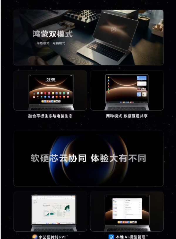 此外,依托鸿蒙 AI PC 架构,新机将强大的本地 AI 能力转化为了一系列创新体验,包括小艺图片转 PPT、小艺画布、小艺知识库等功能。
