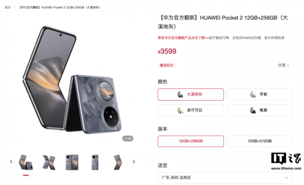 IT之家 1 月 20 日消息,华为现已在其商城上架官方翻新版 Pocket 2 小折叠手机,定价为 3599 元起,IT之家整理价格如下: