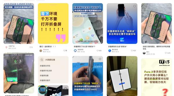 IT之家 1 月 28 日消息,据“科技日报”报道,近期多名网友在社交平台上吐槽,称他们带折叠屏手机去东北等零下温度寒冷地区游玩,结果因气温过低,导致屏幕开合后即损坏(IT之家注:截至发稿,哈尔滨市温度显示为 -24°C)。