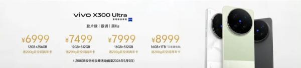 价格方面,vivo X300 Ultra的12GB+256GB版本的售价为6999元,12GB+512GB版本的售价为7499元,16GB+512GB版本的售价为7999元,16GB+1TB版本售价为8999元,16GB+1TB影像套装的售价为11999元。