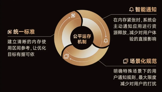为应对上述挑战,金标联盟牵头推进“公平运行内存机制”,旨在为开发者提供统一的优化标准和工具支持,降低适配成本。核心内容包括: