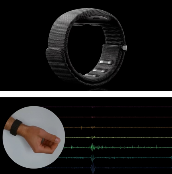 Orion 的输入核心之一是表面肌电图(EMG)腕带,解决 AR 场景无键盘、无触摸屏的交互难题。
