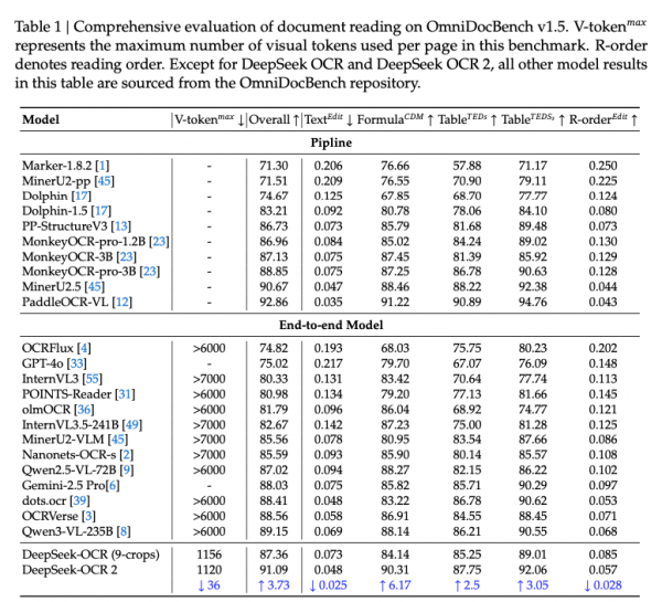 表格来源:1月27日DeepSeek-OCR 2模型开源技术文档