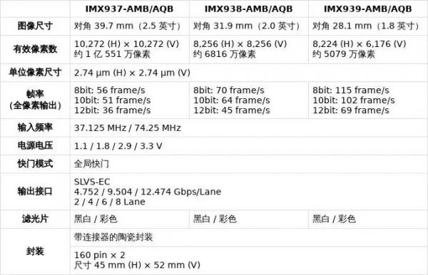 这款cmos主要用于工业用途,适用在高速生产线检测、科学研究等领域。