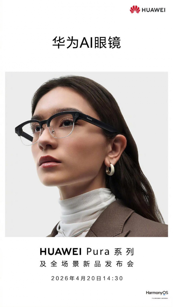4月13日下午,华为终端官微宣布,华为 AI 眼镜将于 4 月 20 日的华为 Pura 系列及全场景新品发布会上正式亮相,官方宣传语为“ 实力 ' 眼' 技 ”。其实,从 4 月 8 日何刚发水印照片到供应链消息密集释出,这款产品已经呼之欲出。