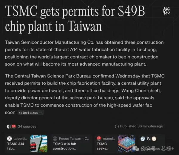 1、台积电获得A14工厂及附属设施的三张建造许可