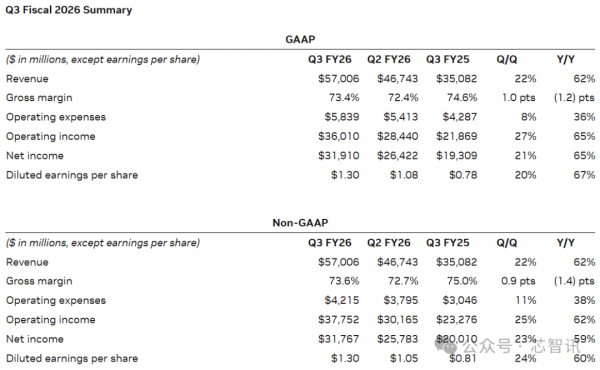 财报显示,英伟达第三财季营收570.1亿美元,同比大涨62%,环比增长22%,不仅创造了单季营收的新高纪录,超出了英伟达指引的529.2亿至550.8亿美元区间,也超出了分析师预期为551.9亿美元。