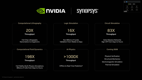 表面上看,这似乎是计算设备供应商(NVIDIA)和软件供应商(Synopsys)之间的一次普通合作,但从细节来看,其影响范围远不止于此。此次合作旨在将计算加速、人工智能辅助工程、数字孪生和求解器重构等技术整合到一项联合战略中,以加速Synopsys的市场推广战略,该战略涵盖从晶体管级设计到最终物理产品的所有工程环节。我指的是所有环节。
