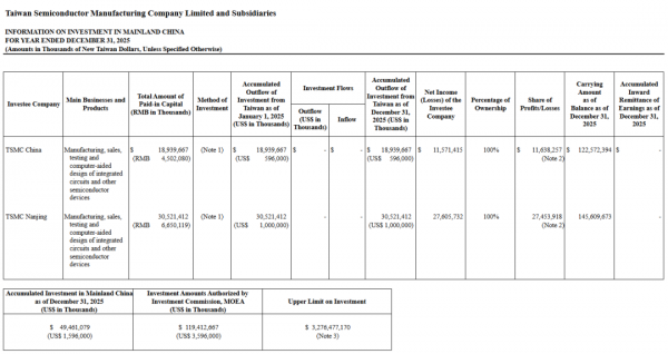在欧洲合资晶圆厂(ESMC)方面,台积电已获得欧盟及德国联邦、州与市政府强力承诺,首座在德国德累斯顿的特殊晶圆厂建设进度如期进行,量产时间将依客户需求及市场条件决定。2025年,台积电对ESMC投入金额为382.22亿新台币(约合12.18亿美元),亏损额达6.89亿新台币(约合2195万美元)。